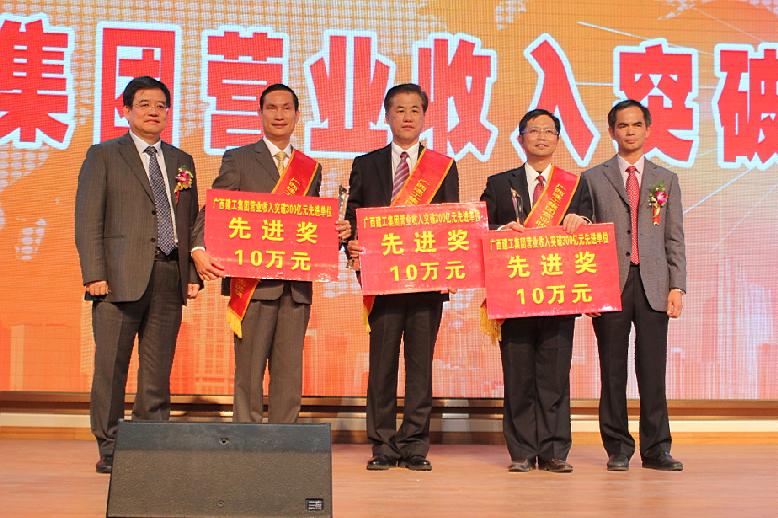12月20日,集团公司营业收入突破300亿元庆典在南宁国际会展中心举行,公司三获嘉奖,其中,公司荣获“先进单位先进奖”,直管中心获评“先进分公司”,经营处荣获“先进管理部门”荣誉称号。