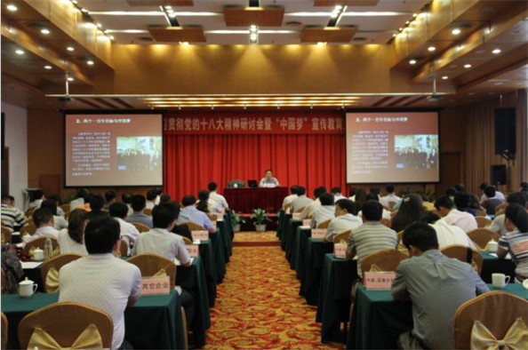 2013年05月23日 15:34研讨会分三个部分,第一部分是表彰学习贯彻党的十八大精神征文活动优秀文章和学习贯彻党的十八大精神演讲比赛,集团公司选送的《深入学习贯彻十八大精神,促进建筑企业转型跨越新发展》等多篇征文获表彰。第二部分是自治区国资委杨朝林副巡视员作学习贯彻十八大精神研讨会暨“中国梦”主题报告。杨朝林副巡视员从全面建成小康社会目标与中国梦;毫不动摇地坚持和发展中国特色社会主义;以十八大精神和中国梦为动力,推动国有企业转型升级跨越发展三个方面分享了其对十八大精神和“中国梦”的理解及阐述了自己对实现“中国梦”的看法。第三部分是企业文化建设业务培训,来自北大纵横管理咨询有限公司的高级副总裁、国际注册咨询师岳云雷,为大家阐述了什么是企业文化、如何构建企业文化等。