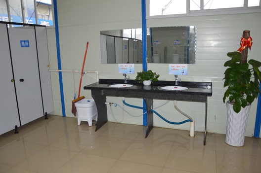 进入工地大门后,办公区、生活区一一展现。办公区有好几处宣传栏,整齐排列很是壮观。办公室安排井然有序、整洁干净,管理人员正在工作。生活区里的卫生间、洗手台、餐厅、休息室可媲美饭店、宾馆。标准的篮球场旁还有一个休息凉亭。办公区、生活区的绿化也有特色,现场视频监控无死角。我想,这还是传统意义上的工地吗?我即时上传几张图片到微博上:我正在工地参观学习。过不久即有博友回复:你确实是在工地吗?你不是在某宾馆吧?就这上传的图片,谁相信这是工地!