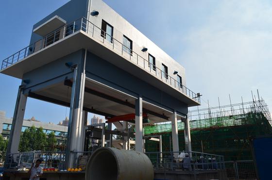 南宁沙井污水泵站项目位于南宁市五一西路北面,设计分为污水泵房、生产管理用房两部分。污水泵房生产区一层为格栅及起重设备安装用房,二层为配电设备用房;生产管理用房为3层综合办公楼。为了减少对周围环境的影响,还配套建设先进的生物除臭系统。