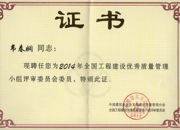 以上五个奖项都属于部级的质量管理成果奖,今年是公司获该等级奖项较多的一年,且又是第一次获得一等奖。由于公司近年来QC小组活动成绩显著,得到中建协的充分肯定,公司韦春娴同志已连续三年受聘担任中建协QC成果评审的评委。(质量科技处)