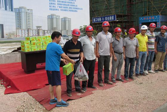2014年07月21日 16:527月16日,公司党委副书记、纪委书记、工会主席黄远奇在第八分公司领导欧阳毅、陆智红、谭正炳、庾鑫等同志的陪同下,先后到贵州安龙•印象荷城、兴义万峰佳苑二期、兴义华联城等项目慰问一线员工,为一线员工及劳务工人送去清凉饮品,让他们在炎炎夏日之中感受到深切关爱和清心凉意。黄远奇副书记还叮嘱大家要科学防暑降温,合理安排工作时间,增强自我保护能力。