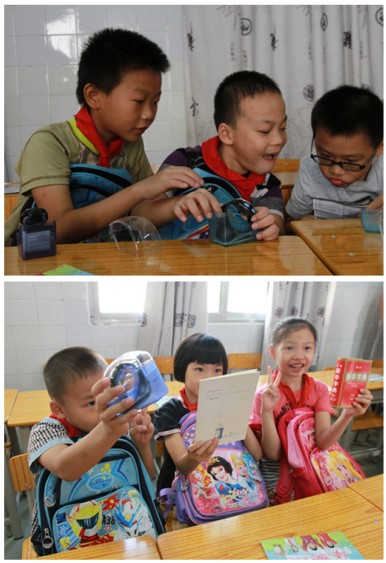 2014年09月25日 11:56“谢谢叔叔阿姨,我们很开心好喜欢!”阵阵欢呼声和那一张张笑脸是20个来自长堽小学小朋友的心情写照。因为他们刚刚得到了一份期待已久的礼物,有书包、彩笔、字典、手表、铅笔、橡皮、作业本、作文书、文学名著等,这些都是他们心中的“微心愿”。