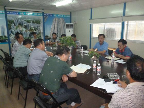 2014年10月11日 16:00李耀俊总经理一行先到项目现场了解工程进度、质量、安全等情况,针对存在的问题做了纠正和指导;随后,在项目部召开了调研会。