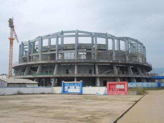 由他主持施工的贵港体育中心、游泳馆以及观景平台BT项目主体结构全貌