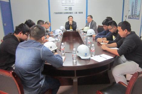 2015年04月10日 10:414月9日中午,春寒料峭,淫雨霏霏,当工地施工管理人员还处于午休时候,公司董事长、党委书记赖榆,副总工程师、安全处处长陆勇祺冒着冷雨悄然来到二分承建的南宁生物工程技术中心A-1#楼工程、广西农科院职工全额集资建房(二期)工程项目检查指导工作。分公司经理卫奕忠,党委书记颜伟陪同。