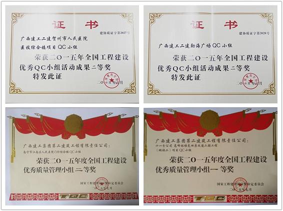 2015年07月13日 16:12此次,公司共荣获六项全国工程建设质量管理小组活动奖项,分别是:公司荣获2015年全国工程建设质量管理小组活动优秀企业,叶彤获全国工程建设质量管理小组活动卓越领导者,韦春娴获全国工程建设质量管理小组活动优秀推进者;十一分高峰林场危旧房改造二期工程项目QC小组的“封闭式现浇混凝土楼梯施工质量控制”成果荣获2015年全国工程建设优秀质量管理小组一等奖,十四分厦门进口商品集散中心工程项目部QC小组的“大截面超长钢筋混凝土斜柱模板施工工艺创新”成果荣获2015年全国工程建设优秀质量管理小组二等奖,十五分南宁市江南区人民医院门诊综合楼项目QC小组的“深基坑支护方案优选创新”成果荣获2015年全国工程建设优秀质量管理小组二等奖。
