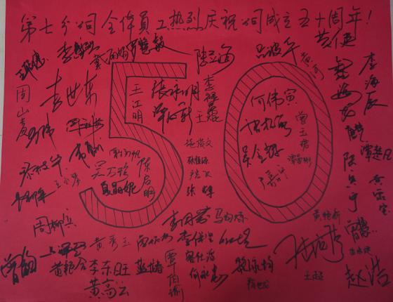 七分公司全体员工签名为公司50岁生日送上祝福