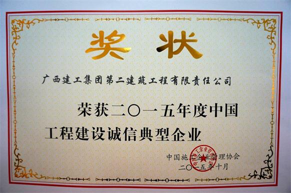 2015年12月11日 11:16日前,中国施工企业管理协会公布获评“2015年度中国工程建设诚信典型企业”的172家企业名单,公司凭借良好的社会信誉和业绩榜上有名,受到表彰。