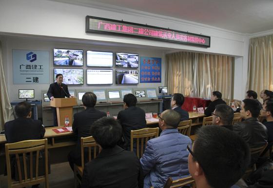 仪式首先由赖榆董事长致欢迎词,他表示,公司对建筑从业人员实名制监控系统的建设高度重视,根据住建部、住建厅、南宁市住建委的文件要求,实行建筑业从业人员实名制管理,在项目安装门禁系统,进出刷卡,实行考勤记录,以实际行动支持建筑业实名制工作。