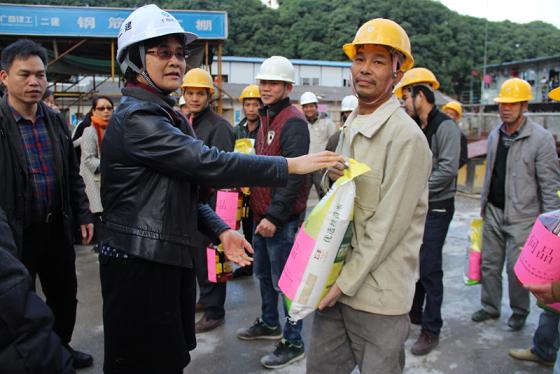 公司桂文清总工程师为工人送上慰问品