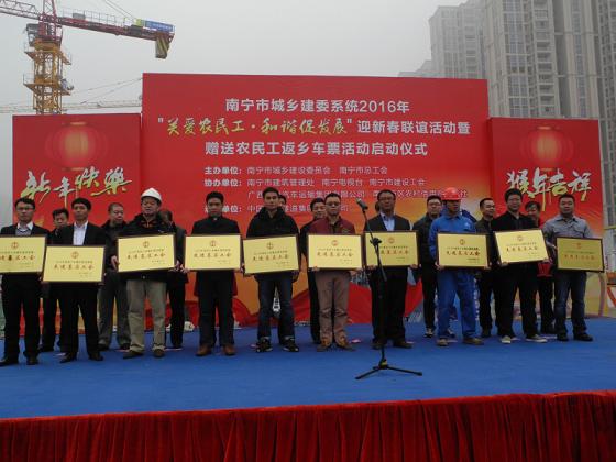 南宁市城乡建设系统2016年“关爱农民工•和谐促发展”迎新春联谊活动 公司荣摘四项殊荣