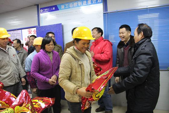 公司黄远奇副书记代表公司及项目部全体人员对建设工会、市总工会领导的关爱和慰问表示感谢,并表示公司会进一步规范提高安全管理标准,紧盯现场安全措施落实,坚决杜绝现场安全侥幸心理和松懈现象,并落实好农民工工资发放工作,让他们开开心心回家过年。(一分 梁中尉)
