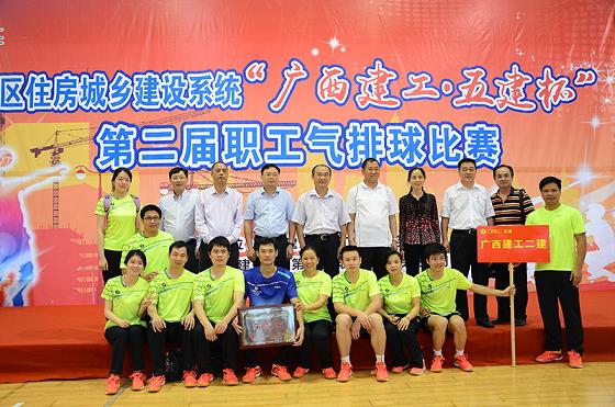 “二建加油!加油二建!”4月24日的柳州市篮球训练馆内,为公司气排球队加油呐喊的声音响彻整个场馆。由自治区建设工会主办的全区住建系统“广西建工五建杯”第二届职工气排球比赛决赛正在紧张激烈的进行着,对阵双方是公司气排球代表队与南宁住房公积金区直分中心气排球代表队。决赛中,公司代表队因为比赛中失误过多,发挥失常以0:2惜败,最终夺取了本次比赛的第二名。