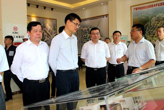 2016年05月30日 10:165月27日,赤日炎炎,暑气熏蒸,集团公司金宁运董事长带队到桂东分公司承建的广西平桂扶贫生态移民与千亿园区建设结合示范工程(一期)工程和平桂高级中学整体搬迁三期工程检查指导工作。中共贺州市委常委、政法委书记韦升安,贺州市政府秘书长陈翼明,平桂管理区党工委书记赖春忠,平桂管理区主任朱建军,公司赖榆董事长,四公司徐木新董事长,五公司黄鼎龙董事长,总承包公司陈祖训董事长,集团公司相关部门领导,桂东分公司经理覃建高等相关领导陪同。