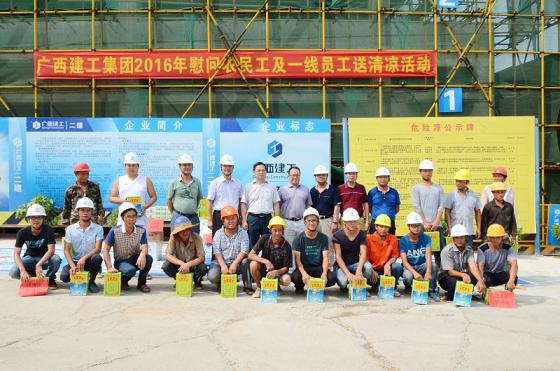 2016年08月15日 08:27尽管已经立秋,但高温却仍在持续。为了保障农民工和一线员工能够安全度过高温时节,8月12日下午,集团公司纪委书记余仲远、工会副主席兰登梅率队到第十九分公司区直单位公共租赁住房项目(自治区林里苑小区)A标段项目进行防暑降温慰问活动。