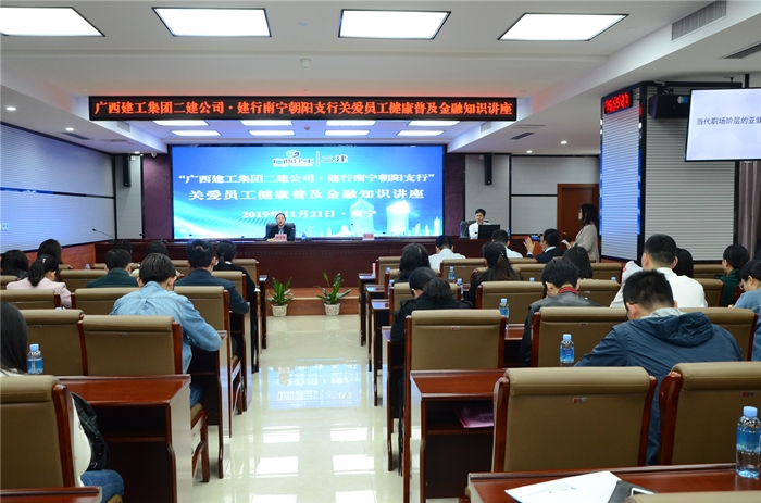 11月21日,公司工会、财务处联合中国建设银行南宁朝阳支行在建工大厦2号楼912会议室举办 “关爱员工健康 普及金融知识”讲座。