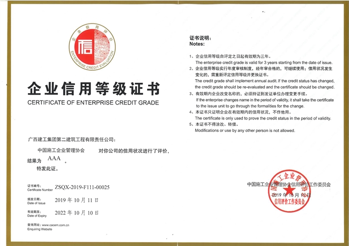 据悉,工程建设企业社会信用评价旨在认真贯彻落实国家信用体系建设要求,加快推动工程建设行业社会信用体系建设,大幅提高企业诚信意识和信用水平,分为AAA、AA、A、B、C五个等级,AAA级为最高等级。评价工作每年开展一次,信用等级有效期三年。