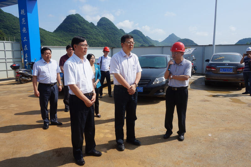 5月9日上午,贺州市市委书记李宏庆来到七分清塘扶贫项目视察工程建设情况。在听取项目部对发展规划和工作情况的汇报后,李宏庆书记对各单位的工作成果给予了充分的肯定,要求项目按时按质完成,落实好国家精准扶贫政策,改善贫困户的生活环境。(七分郭晋东...