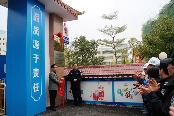 在平桂扶贫生态移民与千亿园区建设结合示范工程(一期)项目,贺州市首个“警民共建合作单位”、贺州市公安局西湾派出所执勤室正式挂牌成立。西湾派出所副教导员黄锡清、生态园项目部经理李育海等相关人员出席活动。仪式上,黄锡清副教导员首先讲述了成立“警...