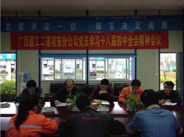 为贯彻落实党的十八大战略部署,进一步做好依法开展生产经营工作,11月6日,桂东分在中国-东盟(崇左)旅游集散中心项目组织学习了党的十八届中央委员会第四次会议精神。分公司领导杨博、雷君参加了会议。分公司党支部副书记石有康主持会议。会议首先由石...