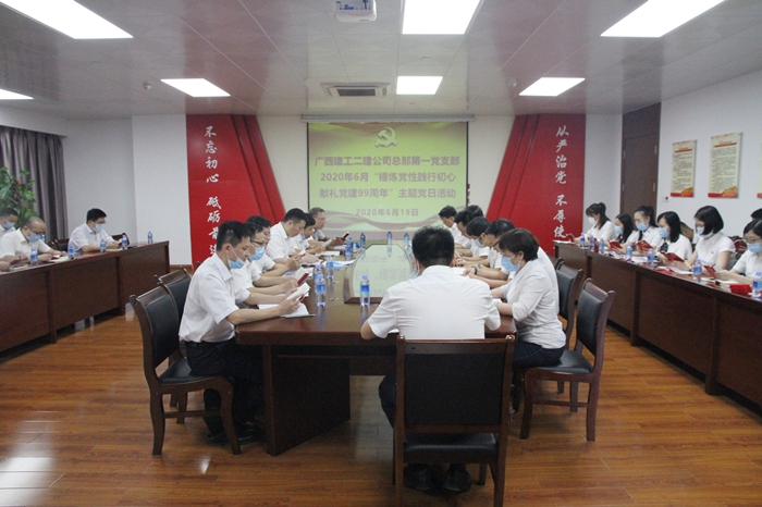 6月19日,公司总部第一党支部在建工大厦2号楼1101党员活动室召开2020年6月“锤炼党性践行初心献礼党建99周年”主题党日活动。公司在家领导苏维明、卫奕忠、叶彤以普通党员身份参加,总部第一党支部书记黄洁主持。会上,公司总部党委书记李军平...