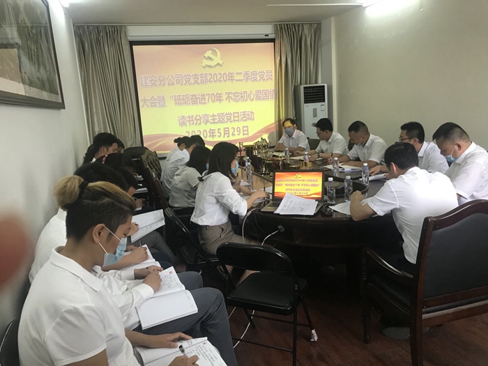 近日,建安分公司党支部召开2020年第二次党员大会暨读书分享主题党日活动。分公司党支部书记、经理梁凌源主持。梁凌源传达学习公司党委《2020年公司属各基层党组织学习宣传贯彻习近平新时代中国特色社会主义思想工作安排》《关于推进基层党组织标准化...