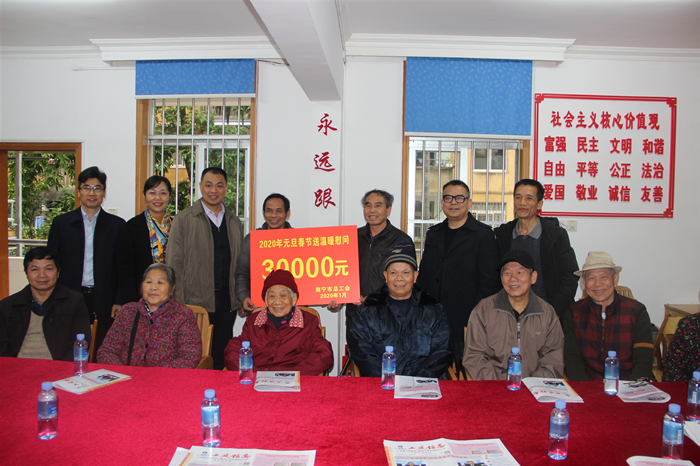 1月16日,南宁市总工会调研员阳建坤、权益保障部部长郑中国、研究室主任师吕一行3人到公司开展元旦春节“送温暖”慰问活动,公司党委副书记、纪委书记、工会主席黄志坚参加。阳建坤向困难职工及会员职工致以新春祝福,亲切询问了他们的生活状况和现实需求...