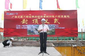 10月14日,由公司西南分公司承建的广西交通工程检测养护材料生产研发基地项目举行封顶仪式。集团公司党委副书记、副董事长、总经理罗涛出席并致辞。广西北部湾投资集团有限公司党委书记、董事长朱坚和宣布项目正式封顶。仪式上,罗涛代表集团公司对项目建...