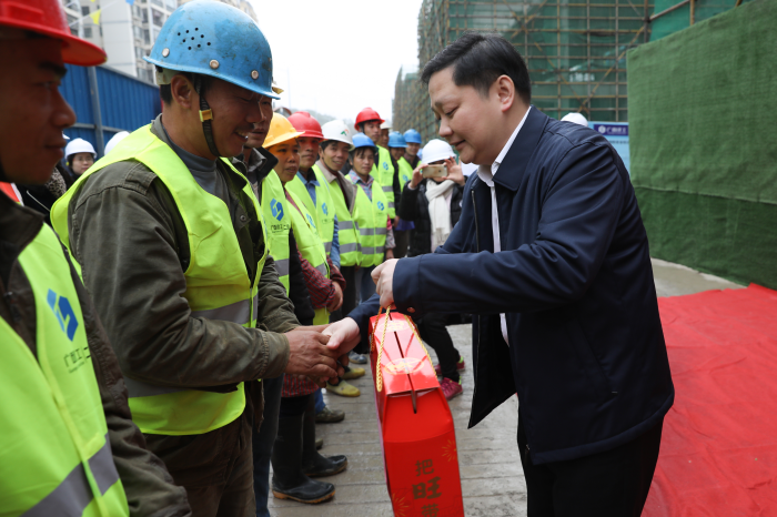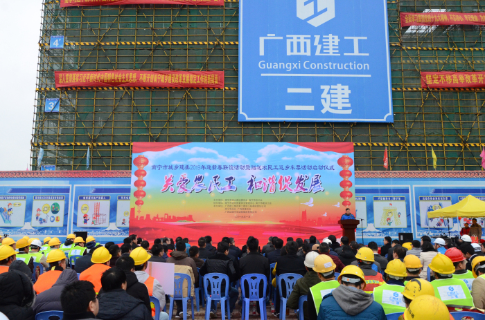 寒风挡不住关爱农民工的热心,1月16日上午,南宁市城乡建委2019年“关爱农民工和谐促发展”迎新春联谊活动暨赠送农民工返乡车票活动启动仪式在公司承建的自治区人民医院凤岭医院项目举行。广西建设工会主任王伟华,南宁市城乡建委党组副书记、副主任巫...