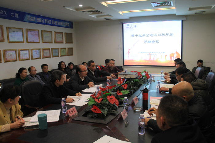 1月19日,第十九分公司召开2018年年终总结会议。公司副总经理卢军宝出席并讲话。会上,卢军宝听取了分公司2018年工作总结与分公司各分管领导的汇报,对分公司2018年工作表示肯定认可。他向与会人员传达了集团公司党委书记、董事长金宁运在公司...