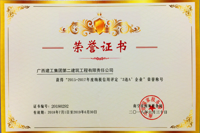 7月20日,南宁市国家税务局向公司颁发了“2015-2017年度纳税信用评定‘3连A’企业”荣誉证书和纳税信用“3连A”企业服务直通卡,以表彰公司自2015年以来连续三年以零扣分的优异成绩获得A级纳税信用人评定。公司财务处处长唐旭彬代表公司...