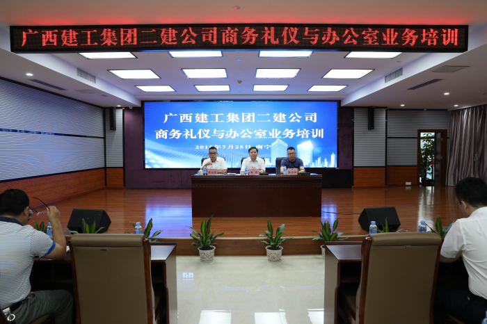 7月25日上午,公司在建工大厦2#楼9楼会议室举办2018年商务礼仪与办公室业务培训。集团公司副总经理、公司党委书记、董事长赖榆出席。集团公司总经理助理、办公室主任陆志斌授课。公司党委副书记、纪委书记、工会主席黄志坚主持。培训课上,陆志斌系...